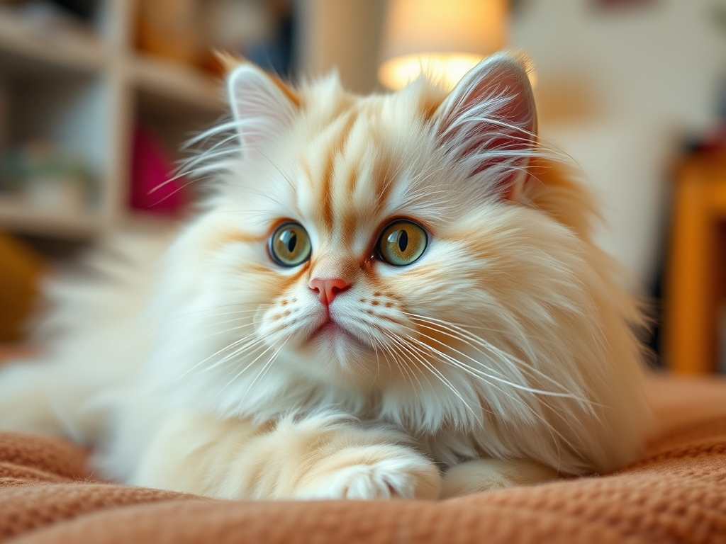 Persians have long and soft hair. They usually have yellowish colored fur and flat faces.